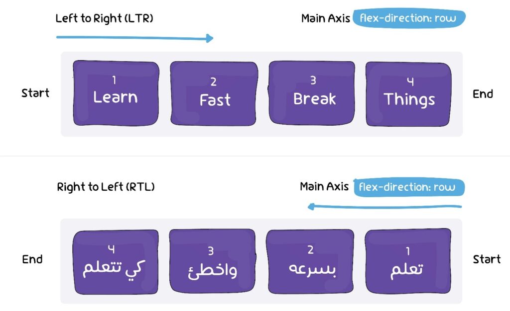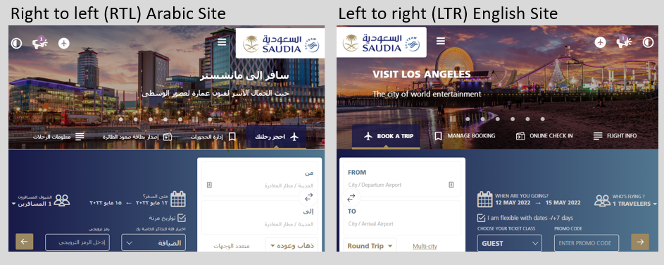 - Side-by-side comparison: RTL Arabic layout vs LTR English layout.