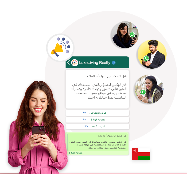 - Hero image showing a professional Omani business context with Arabic and English interface elements.